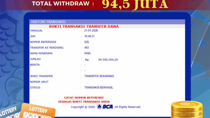 Bukti transfer yang dapat anda lihat adalah bukti SAH / VALID yang langsung di dapatkan melalui bukti transaksi dari Bank yang digunakan untuk pengiriman dana pada rekening pemilik user id. Terima kasih kami sampaikan kepada para pengguna setia BOLAGILA yang telah menggunakan situs kami, sebagai Bandar Terpercaya yang pastinya membayar semua kemenangan member hingga lunas. Apakah BOLAGILA PENIPU ? Reputasi “BOLAGILA TERPERCAYA” sudah sangat melekat.