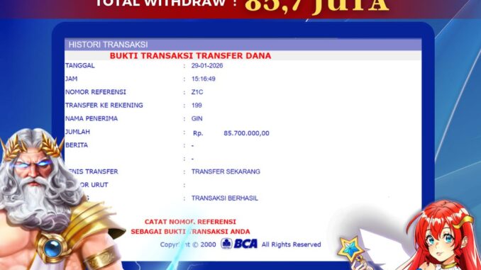 Bukti transfer yang dapat anda lihat adalah bukti SAH / VALID yang langsung di dapatkan melalui bukti transaksi dari Bank yang digunakan untuk pengiriman dana pada rekening pemilik user id. Terima kasih kami sampaikan kepada para pengguna setia BOLAGILA yang telah menggunakan situs kami, sebagai Bandar Terpercaya yang pastinya membayar semua kemenangan member hingga lunas. Apakah BOLAGILA PENIPU ? Reputasi “BOLAGILA TERPERCAYA” sudah sangat melekat.