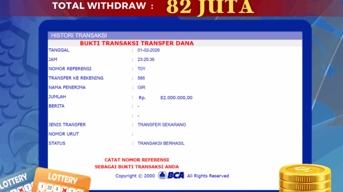 Bukti transfer yang dapat anda lihat adalah bukti SAH / VALID yang langsung di dapatkan melalui bukti transaksi dari Bank yang digunakan untuk pengiriman dana pada rekening pemilik user id. Terima kasih kami sampaikan kepada para pengguna setia BOLAGILA yang telah menggunakan situs kami, sebagai Bandar Terpercaya yang pastinya membayar semua kemenangan member hingga lunas. Apakah BOLAGILA PENIPU ? Reputasi “BOLAGILA TERPERCAYA” sudah sangat melekat.