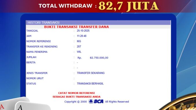 Bukti transfer yang dapat anda lihat adalah bukti SAH / VALID yang langsung di dapatkan melalui bukti transaksi dari Bank yang digunakan untuk pengiriman dana pada rekening pemilik user id. Terima kasih kami sampaikan kepada para pengguna setia BOLAGILA yang telah menggunakan situs kami, sebagai Bandar Terpercaya yang pastinya membayar semua kemenangan member hingga lunas. Apakah BOLAGILA PENIPU ? Reputasi “BOLAGILA TERPERCAYA” sudah sangat melekat.